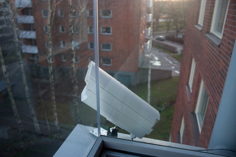 Kameran johdot täytyi askarrella itse, jotta ne sai vedettyä kotelon läpiviennistä. Kamera syö 12V sähköä barreliliittimellä ja videodataa varten kamerassa on RCA-liitin. Myös BNC-liitin on yleinen monissa valvontakameroissa.