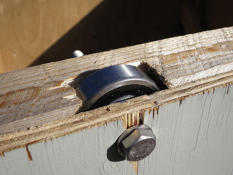 Havaintosuojan yläosan tukipuihin tehtiin upotukset, joihin saatiin suuret kuulalaakerit. Alunperin ajatuksena oli laittaa laakereita yhteensä kahdeksan, mutta päädyimme lopulta laittamaan näitä vain neljä. Neljä on osoittautunut näin myöhemmässä käytössä täysin riittäväksi lukumääräksi.